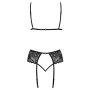 Geef je zelfvertrouwen een boost met het dragen van de Kissable Sexy Lingerie Set - Zwart. Met het dragen van deze prachtige lingerie set zul jij de beste versie van jezelf zijn. De set bestaat uit een beugelvrije bh en een lage string met bijpassende jarretelgordel gemaakt van romantisch kant uitgevoerd in de prachtige kleur zwart. Doordat deze semi deels transparant is krijgt de set een pikante uitstraling waar je partner geen genoegen van zal krijgen. Daarnaast is deze prachtige set heerlijk zacht en licht elastisch voor een perfect pasvorm.