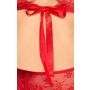 De jarretelgordel aan de achterkant is voorzien van een satijnen strik, wat een speels en verleidelijk detail is. De jarretels zijn verstelbaar, zodat je ze kunt aanpassen aan de lengte die het beste bij je past. Hierdoor kun je de set combineren met je favoriete paar kousen voor een complete en sexy look.