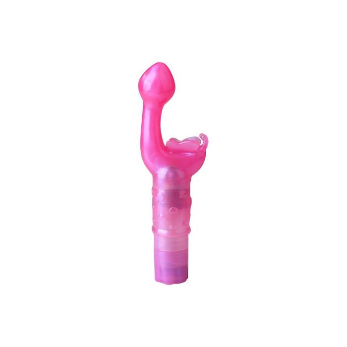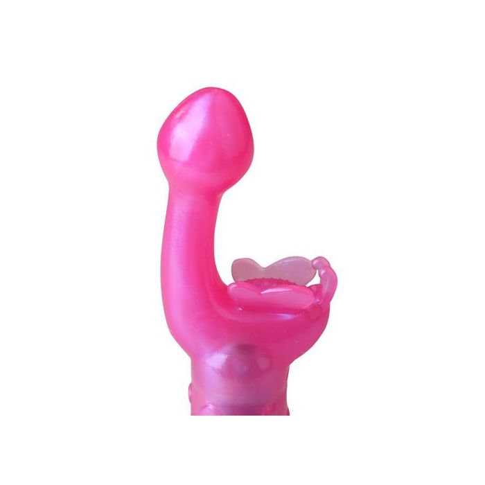 Kleine roze G-spot vibrator. Fladderend als een vlinder. Dat is wat de Butterfly Kiss vibrator in het roze voor jou in petto heeft. Deze kleine vibrator is sensueel gevormd en gemaakt van zacht rubber. De bolvorm bereikt met het grootste gemak jouw g-spot. De vlinder kriebelt en is zacht. De vibrator is veilig en hygiënisch en heeft verschillende trilfuncties. De Butterfly Kiss vibrator is er voor jou, als je niet alleen vlinders in je buik wilt.