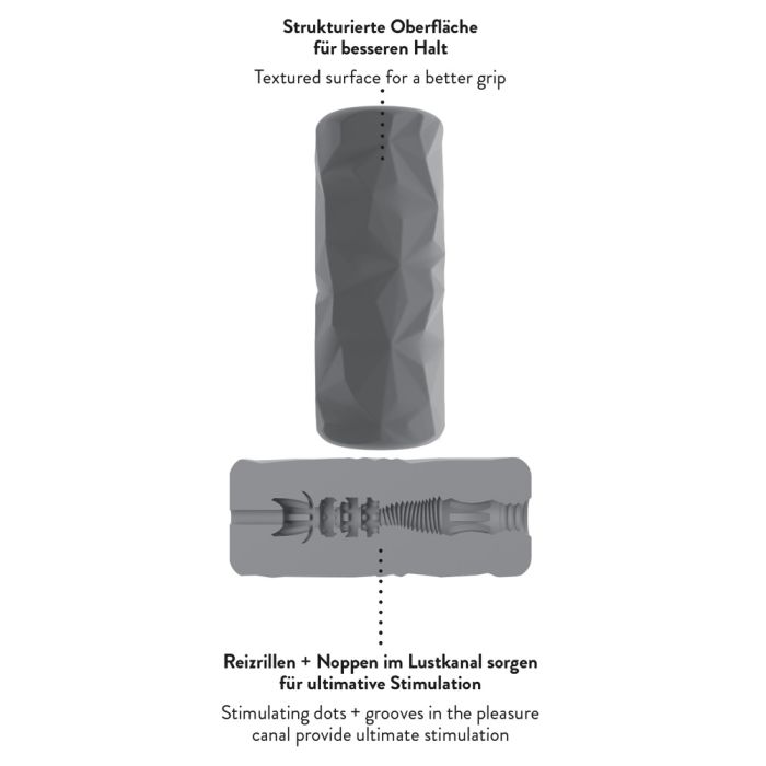 Kies voor een handjob op een totaal nieuw niveau. Deze masturbator heeft een discrete look met een anti-slip buitenkant met textuur. De rekbare genotstunnel van huidachtig en zijdezacht materiaal heeft uitgesproken stimulatie nopjes en groeven aan de binnenkant voor een intense massage tijdens het je handjob. De druk kan gemakkelijk worden gevarieërd voor een heerlijk aangrijpend gevoel.
