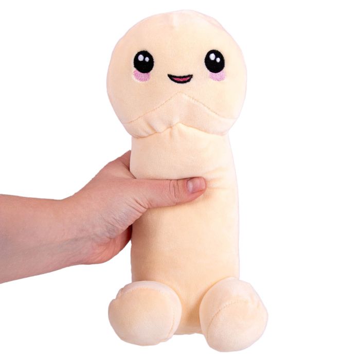 De piemel knuffel is een uniek en speels cadeau dat perfect is voor verschillende gelegenheden, zoals vrijgezellenfeesten, verjaardagen of als een luchtig geschenk voor vrienden. Dit schattige, nude-kleurige pluche speeltje is ontworpen met een geborduurde lachende mond en ogen op de eikel, wat het een vrolijke uitstraling geeft. De piemel knuffel staat of zit op zijn bolvormige pluche testikels, wat bijdraagt aan de charmante en humoristische uitstraling. Het zachte en donzige materiaal, gecombineerd met de stevige vulling, zorgt ervoor dat het een plezierig en knuffelbaar item is dat zowel voor decoratie als voor vermaak kan dienen. Dit product is niet alleen een bron van plezier, maar ook een origineel gespreksonderwerp dat zeker een glimlach op het gezicht van de ontvanger zal toveren.