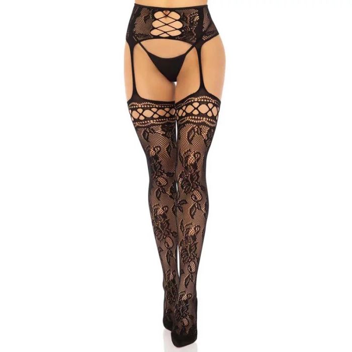 Kousen met Jarratelgordel Leg Avenue Rose Backseam