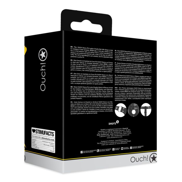 Wat deze kuisheidsgordel echt bijzonder maakt, is het gebruik van hypoallergene en geurloze materialen, waardoor het comfortabel is om te dragen, zelfs voor langere periodes. De verstelbare bandjes zorgen ervoor dat je altijd de perfecte pasvorm kunt vinden, ongeacht je lichaamsvorm. Of je nu een beginner bent in de wereld van fetisj of een doorgewinterde pro, deze kuisheidsgordel is een must-have voor iedereen die zijn BDSM-ervaring wil verrijken. Laat je fantasieën de vrije loop en ontdek nieuwe hoogtes van genot met deze OUCH! chastity belt!
