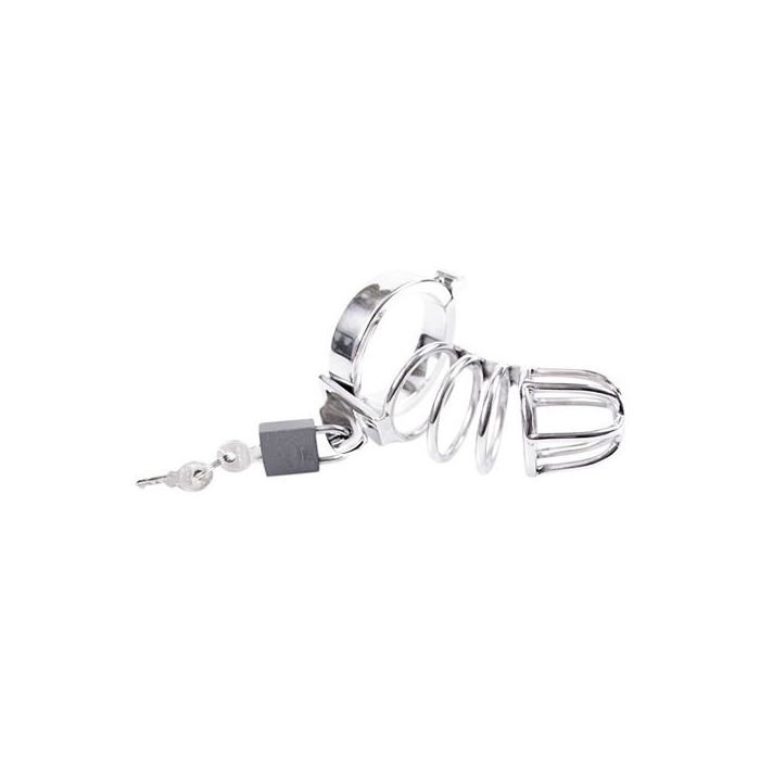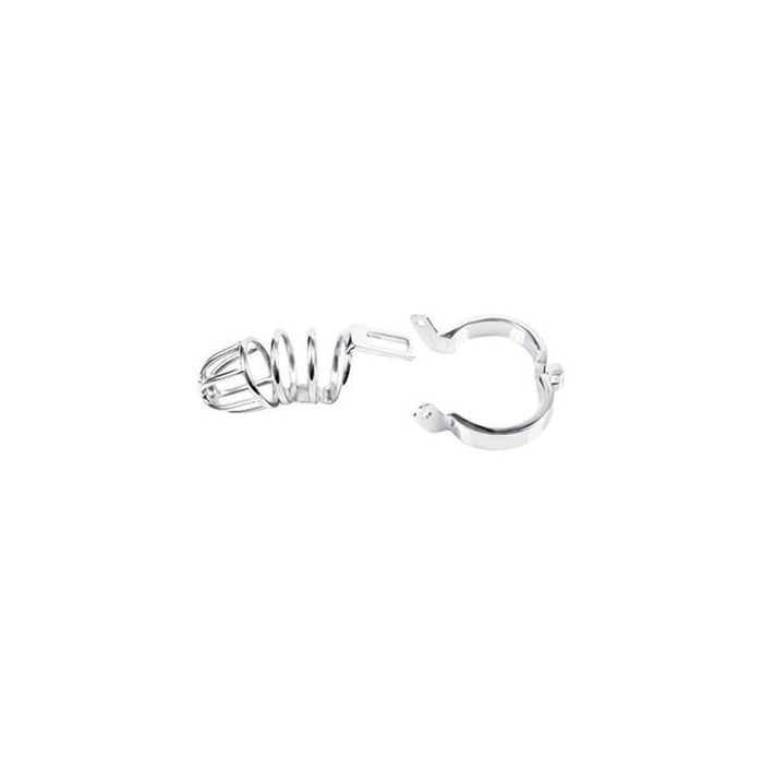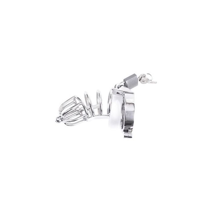 Kuisheidskooi welke op slot te doen is met een klein hangslot. Geschikt voor de wat kleinere penis. Aan de peniskooi zit een ring bevestigd die om de penis of ballen gedaan kan worden. Deze kooi is in twee ringmaten verkrijgbaar. Zeer spannend om te dragen tijdens een uitdagende avond samen met je partner! Wordt geleverd inclusief slotje