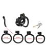 De CELLMATE FlexiSpike wordt geleverd met vier extra sets siliconen spikes in zwart en roze, waardoor je de kooi niet alleen kunt aanpassen aan je persoonlijke voorkeur, maar ook extra stimulatie kunt bieden indien gewenst. Daarnaast wordt de kooi geleverd met zowel een traditioneel slotje met 2 sleutels als een speciale ABS-kunststof adapterpin. Met deze adapterpin kun je de kooi in Stealth-modus sluiten met een van de vijf plastic sloten, elk voorzien van een unieke fraudebestendige identificatiecode. Dit is ideaal voor situaties waarin je door reis- of metaaldetectoren moet gaan. Als reserve zijn er ook sets met tien wegwerpsloten apart verkrijgbaar. Met de CELLMATE FlexiSpike-kuisheidskooi heb je volledige controle en kun je genieten van een gepersonaliseerde en veilige ervaring.