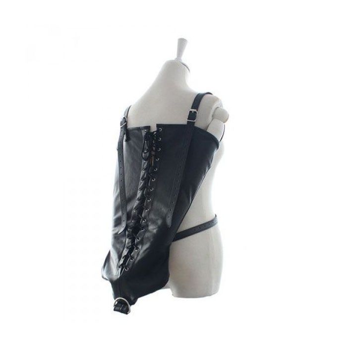 Bind de armen van je liefje vast achter haar rug met deze kunstleren armbinders. Haar armen zullen worden gevangen achter haar rug in een geile omhelzing waarna jij alles met haar kan doen wat je wil. De armbinders zijn geheel verstelbaar met riempjes en met veters. Aan de onderkant is een D-ring bevestigd zodat jij er attributen aan kan hangen.