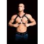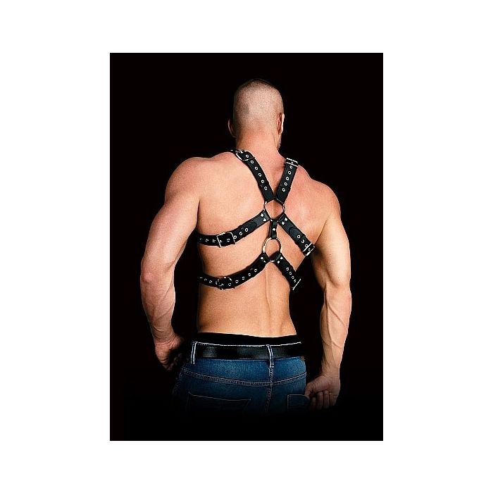 Met dit harnas aan weet jij zeker dat jij iemand aan de haak zal slaan tijdens een spannend feestje. Het Kunstleren Hren Harnas - Andres loopt onder de oksels door naar achter en zit om jouw afgetrainde borst heen. In het midden zijn twee o-ringen bevestigd waaraan jij tijdens een bdsm spel attributen kan vast klikken. De achterkant van dit harnas heeft dezelfde vormgeving als de voorkant en is verstelbaar met stevige gespen voor een geweldige pasvorm. Hierdoor is dit harnas een one size fits most en zal die bij elke man geweldig staan. De brede banden zijn voorzien van allemaal studs voor een mannelijke stoere look. Maak je outfit compleet met een stoere leren broek of een gescheurde spijkerbroek en maak je partner helemaal gek met dit Kunstleren Heren Harnas - Andres.