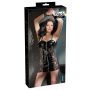 Deze schitterende lak jurk heeft een unieke combinatie van lak materiaal en kanten zijkanten die licht doorschijnend zijn voor een sexy uiterlijk. Het mini jurkje heeft spaghettibandjes die verstelbaar zijn voor een mooie pasvorm. De jurk is van voren te sluiten met een all over rits die ook van beneden nar boven is te openen voor een sexy look. In het midden is een gesp bevestigd zodat jij hem in de taille wat strakker kan zetten. Het jurkje is lekker kort voor een extra spannende look. Draag het jurkje in combinatie met een paar hoge pumps om je look compleet te maken.