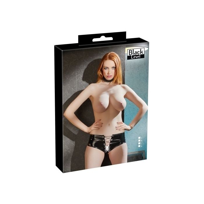 Deze lak slip van Black Level heeft een verleidelijk open voorkant. De rijgdetail loopt van de voorkant helemaal naar de billen. Je ziet er zo ontzettend sexy uit dat je partner zich niet meer kan inhouden.