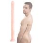 Hoeveel centimeter kan jij van deze lange dildo nemen? Dildo Leo is 50.00 cm lang en heeft een geaderde schacht. Dankzij zijn zuignap kun je hem op elke gladde ondergrond vastzetten zodat je hem kan nemen in je vagina, anus of in je mond om te trainen om zo diep mogelijk te kunnen pijpen. Deze enorme dildo is flexibel zodat hij altijd de rondingen in je lichaam volgt wanneer hij in je kronkelt.