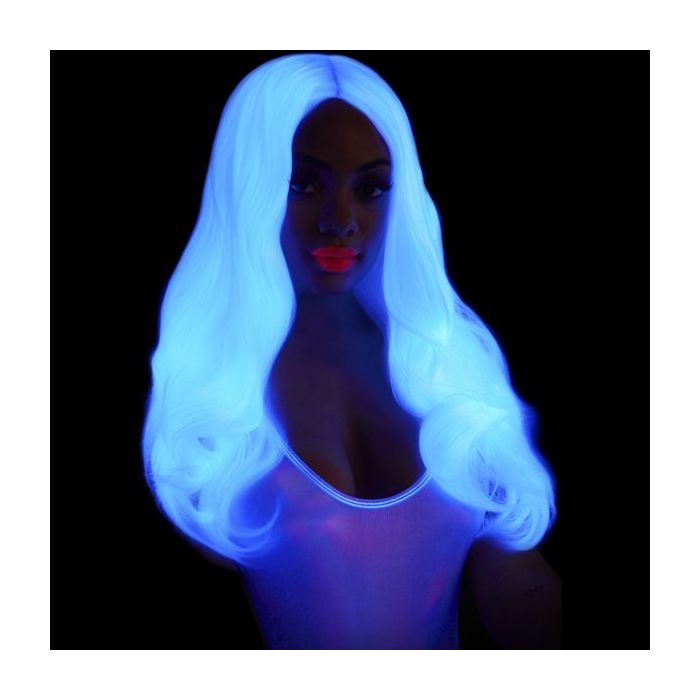 Kom jij regelmatig in de club of bezoek jij alle festivals? Ga dan ook eens verkleed als iemand anders in een de Lange Golvende Pruik - Wit met glanzende lokken die oplichten onder UV-licht, super gaaf dus tijdens een feest!
