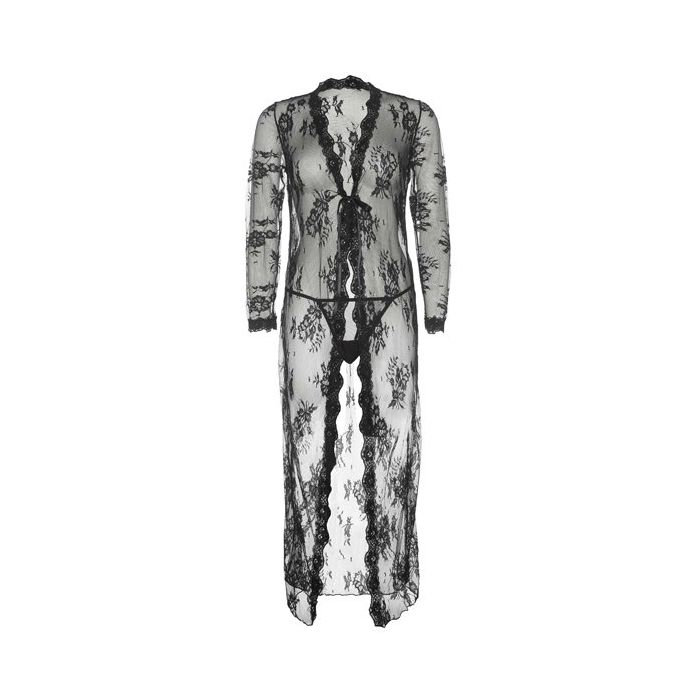 Wanneer jij verschijnt is deze kimono gemaakt van zacht en doorschijnend materiaal met kanten details, zul jij direct alle aandacht krijgen van je lover. Je laat namelijk niets verborgen in de fijne stof en bijpassende doorschijnende string. Maak de striklint aan de voorkant langzaam los en laat de kimono openvallen voor een verleidelijk wauw effect.