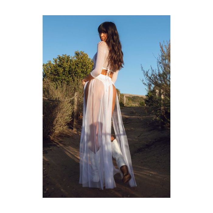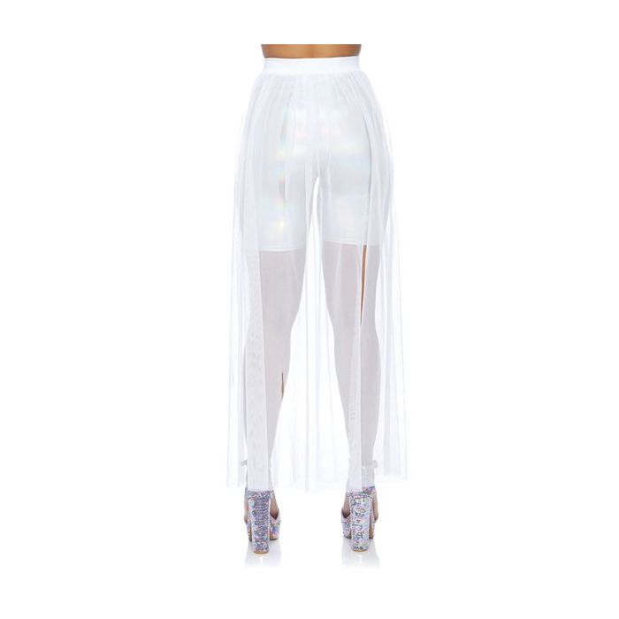 Of je nu naar een club gaat of naar een festival, met de Lange Multi Split Rok - Wit van Leg Avenue maak jij iedere party look compleet! De lange maxi rok is gemaakt van doorschijnend micro mesh. De stof voelt heerlijk aan en valt zwierig rond jouw benen. De rok heeft een brede elastische tailleband.