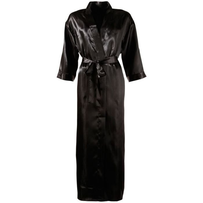 Deze lange, elegante kimono komt uit de Cottelli Collection en is geheel gemaakt van glanzend zwart satijn van de hoogste kwaliteit. De kimono heeft wijde mouwen en komt tot ongeveer op de enkels (per persoon en maat verschillend). De kimono heeft een zwart ceintuur gemaakt van hetzelfde materiaal als de kimono zelf. Combineer deze kimono met een sexy negligé, een comfortabele pyjama, alleen een stringetje of draag er helemaal niks onderaan!