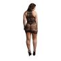 Het Le Désir Criss Cross Neck Mini Jurkje - Plus Size geeft jou een sexy look om bij weg te dromen. Dit korte jurkje bestaat uit verschillende stroken netstof structuren in golvende lijnen voor een heerlijk speels effect. Het strakke mini bodystocking jurkje is gemaakt van heerlijk zacht, 4-way stretch materiaal. Het jurkje ziet er romantisch uit door de stroken bloemen kant. Het halter model met opstaand kraagje geven een vlot uiterlijk. Het decolleté is opengewerkt en met een criss cross design helemaal perfect!