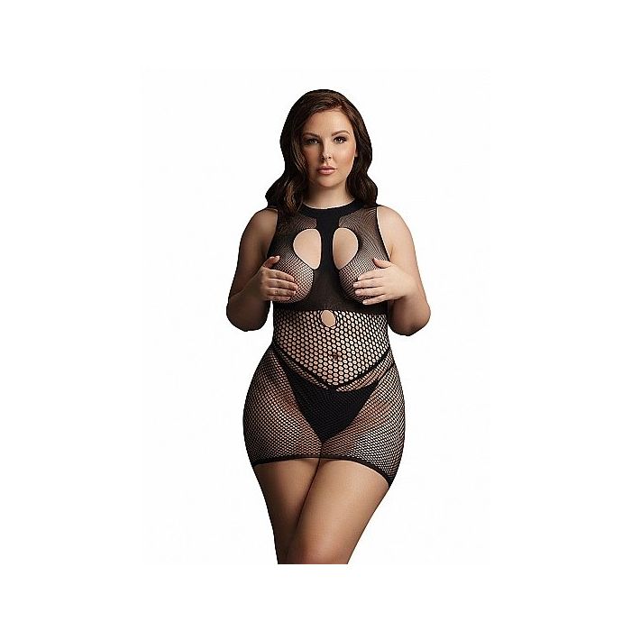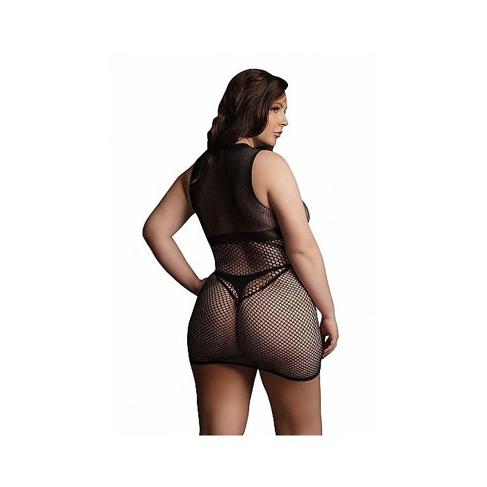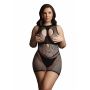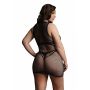 Le Désir Duo Net Open Minijurk - Zwart is een sexy mini jurkje met hoge hals gemaakt van verschillende soorten visnet materiaal. De opaque choker detail kan zowel met open als bedekte cups worden gedragen. Hoe sexy wil jij zijn?? De jurk heeft een zeer kort model en valt maar net over de billen heen. De spannende V-lijn accentueert perfect de taille voor mooie vormen. De zachte en super elastische stof is one size en is geschikt voor de maten XL tot 4XL.