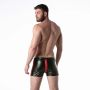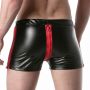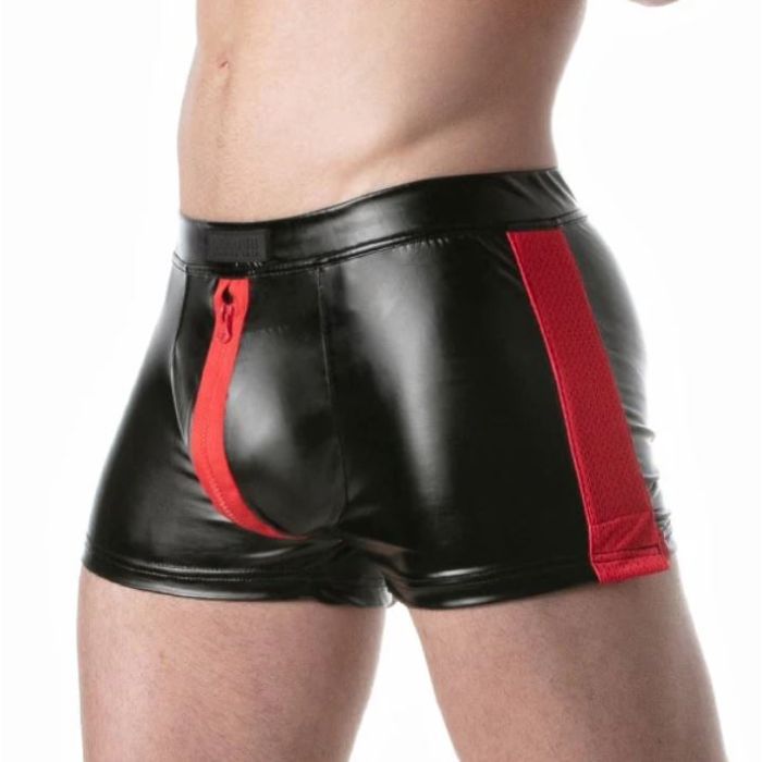 Deze stretchy leatherette broek is perfect voor degenen die op zoek zijn naar een kledingstuk met een sterke fetish uitstraling. Gemaakt van hoogwaardige materialen, biedt deze broek een comfortabele pasvorm dankzij het gebruik van een elastische stof. De broek is taps toelopend, waardoor hij een gestroomlijnde look creëert die perfect is voor verschillende gelegenheden. Een opvallend kenmerk van deze broek is het sportieve mesh paneel detail. Dit detail voegt niet alleen een vleugje stijl toe, maar zorgt ook voor extra ademend vermogen, waardoor je je de hele dag comfortabel voelt. Het mesh paneel is strategisch geplaatst om de broek een slanke pasvorm te geven, waardoor je er geweldig uitziet en je vrij kunt bewegen. De dubbele ritssluiting met tweewegsopening is een handig detail dat zorgt voor gemakkelijke toegang. Of je nu snel iets uit je zakken wilt halen of gewoon een beetje extra ventilatie nodig hebt, deze broek biedt je de flexibiliteit die je nodig hebt. Daarnaast is er een discrete silicone LEADER merklabel op het linker dijbeen geplaatst, wat een subtiele toevoeging is aan het ontwerp van de broek. Al met al is deze broek een geweldige keuze voor degenen die op zoek zijn naar een combinatie van stijl, comfort en een vleugje fetisj.