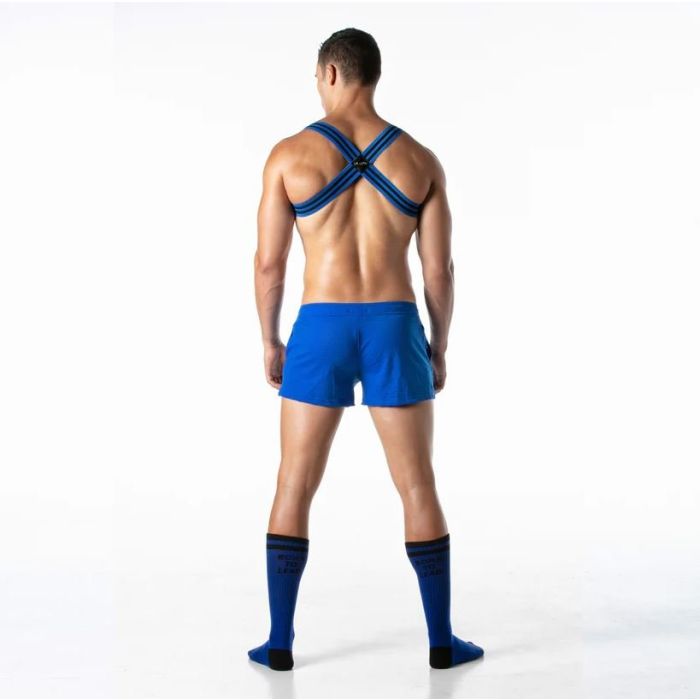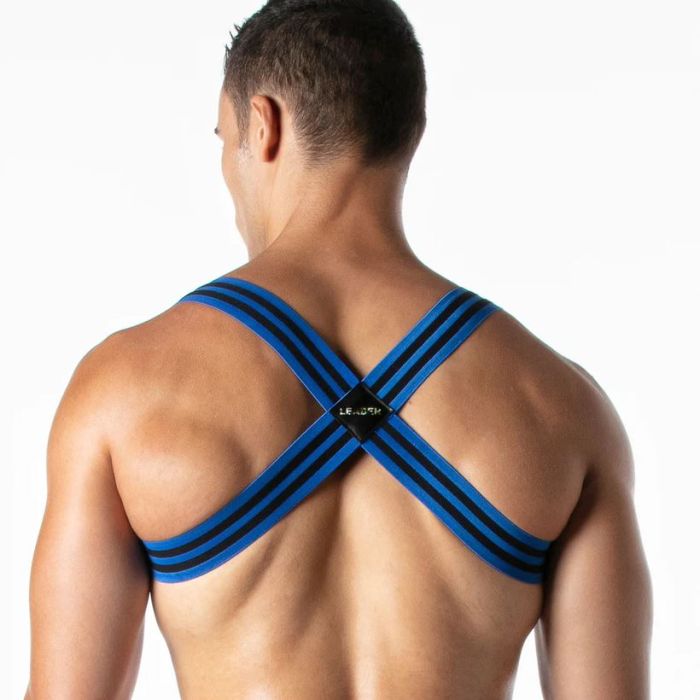 Deze hoogwaardige jacquard elastische fetish harnas heeft een breedte van 4 cm. Het is gedetailleerd met contrasterende strepen en het LEADER-logo op de borst in een contrasterende kleur, evenals een leren LEADER-label op het kruisgedeelte aan de achterkant voor een krachtige fetish uitstraling. Het harnas is gemaakt van duurzaam materiaal en biedt een comfortabele pasvorm. De elastische band zorgt ervoor dat het harnas goed op zijn plaats blijft zitten tijdens het dragen. Met zijn opvallende design en gedurfde details is dit harnas perfect voor liefhebbers van fetisjmode. Het is geschikt voor zowel mannen als vrouwen en kan worden gedragen tijdens intieme momenten of als een opvallend accessoire bij speciale gelegenheden. Of je nu een fetisjfeest bijwoont of gewoon je eigen stijl wilt uitdrukken, dit harnas zal zeker de aandacht trekken. Het is een uniek stuk dat je outfit een extra vleugje allure geeft. Met de LEADER-logo's en het leren label straalt dit harnas kwaliteit en vakmanschap uit. Het is een must-have voor iedereen die op zoek is naar een stijlvolle en gedurfde toevoeging aan hun fetisjcollectie.