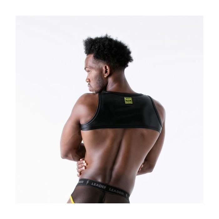 Het te gekke Leader Sinner Harnas - Geel is een super sexy kunstleren harnas. Dit harnas met snug fit pasvorm zit lekker strak rond jouw gespierde schouders en laat jouw er nog breder en mannelijker uitzien.