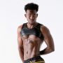Het harnas heeft een ronde halslijn en semi-transparant micro mesh op de schouders. Langs de randen van het mesh is het harnas afgewerkt met metalen pyramide studs. Op de rug is het Leader embleem van rubber aangebracht met gele accenten.
