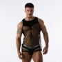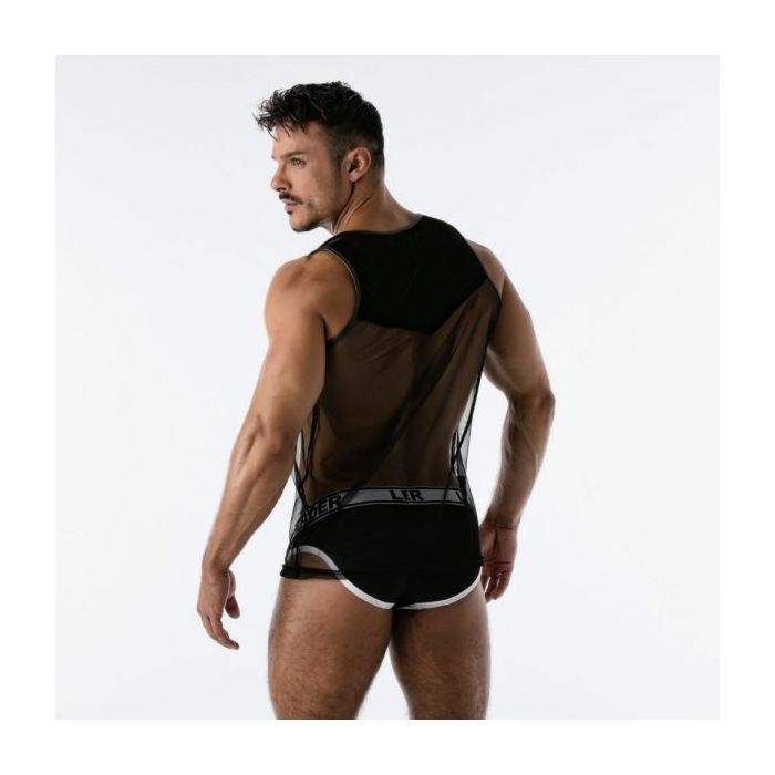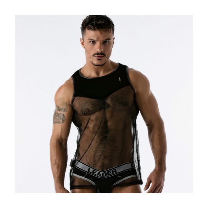 De Leader Velvet Mesh Tanktop - Zwart is onmisbaar in jouw verzameling partywear. De tanktop is gemaakt van een zwart fluwelen bovenkant en semi-transparant micro mesh onderkant. Het fluweel is zo gevormd dat jouw borst- en rugspieren er extra smakelijk uitzien.