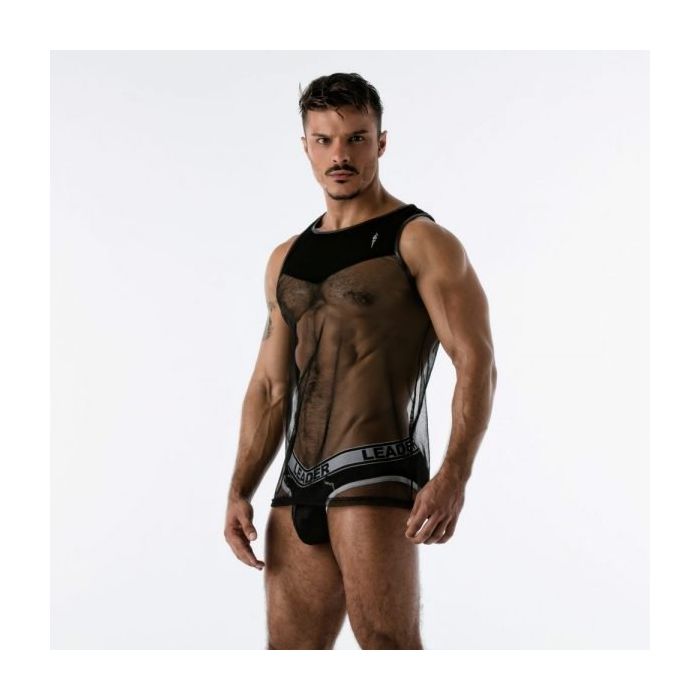 Leader Velvet Mesh Tanktop - Zwart