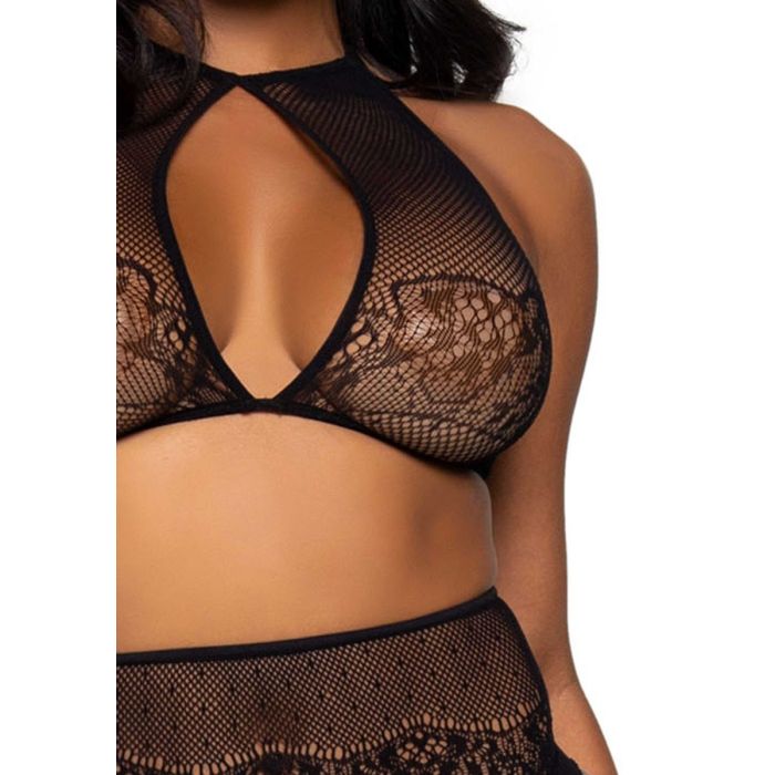 Leg Avenue Halter Crop Top & High Waist Slip - Zwart
