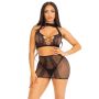 Leg Avenue Halter Crop Top & Mini Rok - Zwart