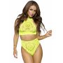 Maak een statement met deze prachtige 2-delige gehaakte kanten halter crop top van het merk Leg Avenue. Dit opvallende setje in een stralende knalkleur geel is perfect voor de modebewuste vrouw die graag haar unieke stijl wil laten zien. De crop top heeft een elegante halternek en een speelse strappy rugdetail, wat zorgt voor een verleidelijke uitstraling. Het delicate kant geeft een vleugje vrouwelijkheid en maakt het geheel perfect voor zowel een zomerse festivaloutfit als een avondje uit met vrienden.