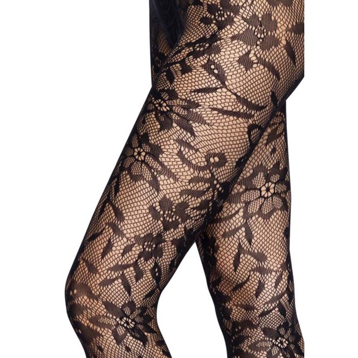 Deze trendy zwarte kanten panty van Leg Avenue heeft een opvallend gebloemd motief. Je benen zullen zeker opvallen in deze modieuze panty met een fijne kanten structuur. De panty heeft een all-over print met sierlijk bloemmotief. Door het gebruik van zachte en elastische materialen is het iedere keer een feest om deze panty te dragen.