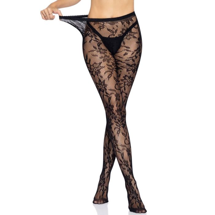 Leg Avenue Kanten Panty Floral - Zwart
