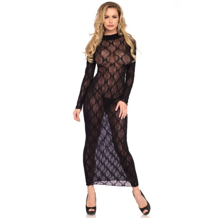 Leg Avenue Lange Jurk met Strikjes - Zwart