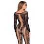 Deze prachtige bodystocking combineert doorschijnend bloemenkant met verfijnde verticale mesh-details, wat zorgt voor een adembenemend vetersysteem aan zowel de voor- als achterkant. De wijde halslijn biedt je de vrijheid om deze op of van de schouders te dragen, waardoor je de perfecte balans vindt tussen elegantie en verleiding. De lange mouwen voegen een vleugje mysterie toe aan het onthullende ontwerp, waardoor je er op elk moment van de dag fantastisch uitziet.