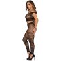 De bijpassende legging met hoge taille is een echte showstopper. Het ingewikkelde kant- en visnetdessin geeft een unieke twist aan je outfit en zorgt voor een verfijnde uitstraling. De hoge taille benadrukt je figuur en biedt tegelijkertijd comfort en ondersteuning. Deze set is perfect voor de moderne vrouw die haar innerlijke verleidster wil ontketenen. Voeg deze onweerstaanbare set toe aan je garderobe en maak een blijvende indruk waar je ook gaat!