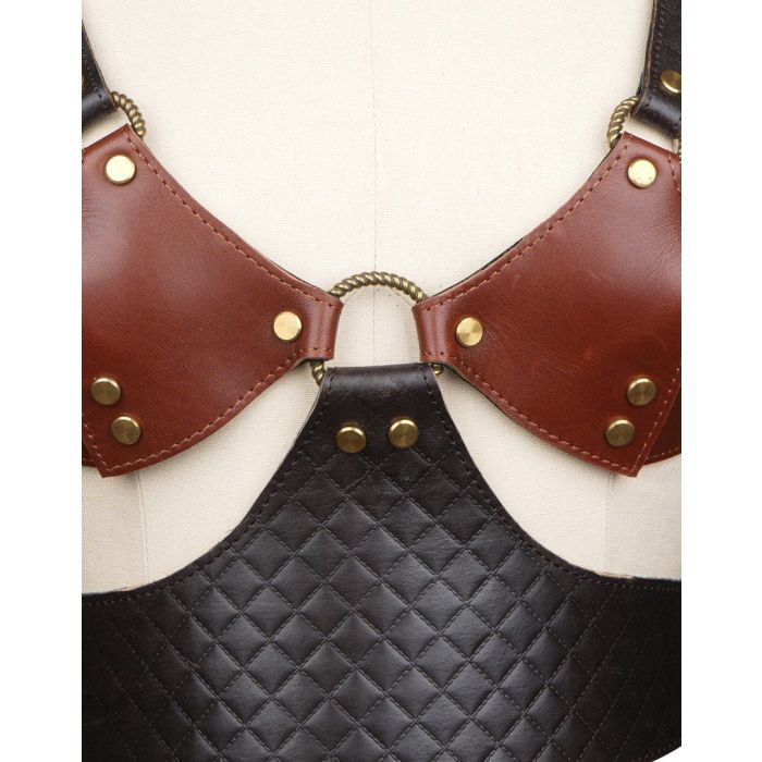 Deze bralette van Liebe Seele is een stijlvol en luxueus kledingstuk gemaakt van echt rundleer. Het unieke ontwerp combineert twee kleuren en texturen, waardoor het een opvallende en trendy uitstraling heeft. De bralette is gevoerd met zacht lamsleer, wat zorgt voor een comfortabele pasvorm. Daarnaast is het verfraaid met The Equestrian kenmerkende accenten in het goud, waardoor het een elegante en chique uitstraling krijgt.