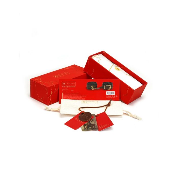 Deze enkelboeien van het merk Liebe Seele zijn een luxe toevoeging aan elke bondagecollectie. Ze zijn met de hand gemaakt van hoogwaardig rundleer en hebben een rijk gewatteerde binnenkant gevoerd met zacht lamsleer voor optimaal comfort. De boeien zijn verstelbaar tussen 17 en 27,5 cm en zijn voorzien van gouden accenten met het kenmerkende Equestrian design. Met twee kleuren en texturen, zijn deze enkelboeien perfect voor zowel beginners als ervaren bondage liefhebbers.
