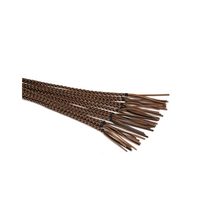 Deze flogger van Liebe Seele is een hoogwaardig product dat is gemaakt van een houten handvat, omwikkeld met echt handgevlochten rundleer. Het heeft een set van negen strengen individueel gevlochten met een dubbel koorduiteinde per streng, wat zorgt voor een intensere sensatie. De flogger heeft een totale lengte van 93 cm, met een handvat van 23 cm en een polsband met een diameter van 13 cm. Dit product is perfect voor liefhebbers van BDSM en biedt een unieke ervaring.
