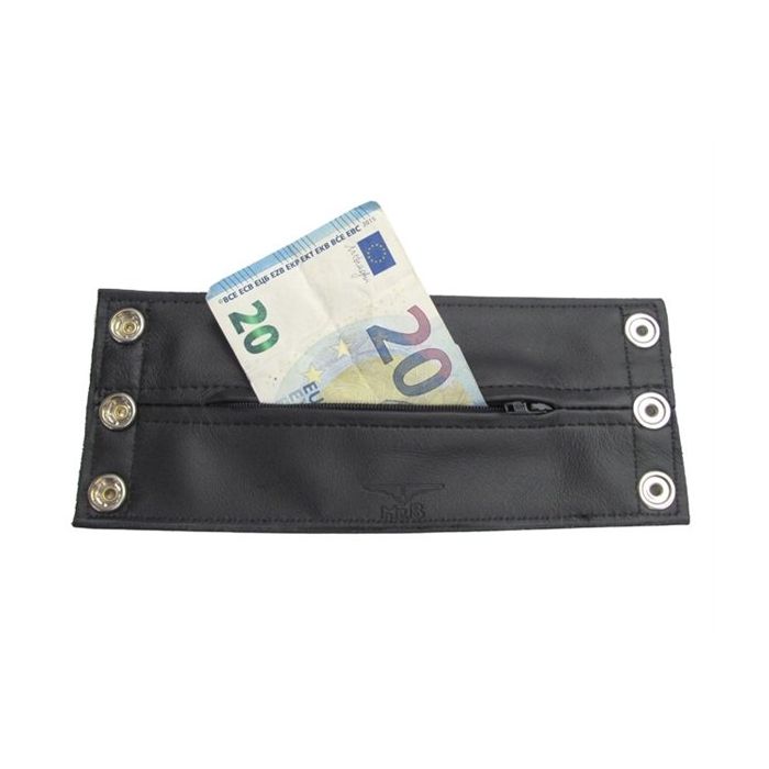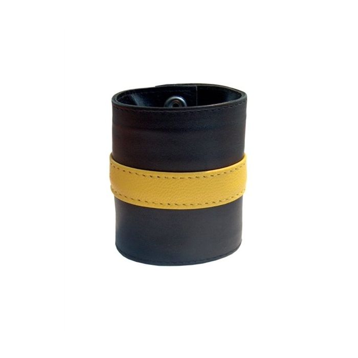 Voor elk feestje waarbij jij weinig tot niks aanhebt is deze leren polsband een echte uitkomst. Hij maakt je outfit niet alleen compleet maar hij is ook nog eens handig om je pasjes en geld in op te bergen. Het soepele leer zal fijn om je pols heen zitten en zal na elke keer een stukje fijner zitten. Deze polsband is voorzien van een Gele streep dus combineer het met je tevens Zwart / Geel gestreepte outfit. Hij sluit met drie drukknopen en is verkrijgbaar in verschillende maten.