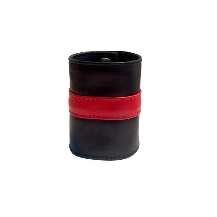 Voor elk feestje waarbij jij weinig tot niks aanhebt is deze leren polsband een echte uitkomst. Hij maakt je outfit niet alleen compleet maar hij is ook nog eens handig om je pasjes en geld in op te bergen. Het soepele leer zal fijn om je pols heen zitten en zal na elke keer een stukje fijner zitten. Deze polsband is voorzien van een rode streep dus combineer het met je tevens Zwart / Rode gestreepte outfit. Hij sluit met drie drukknopen en is verkrijgbaar in verschillende maten.
