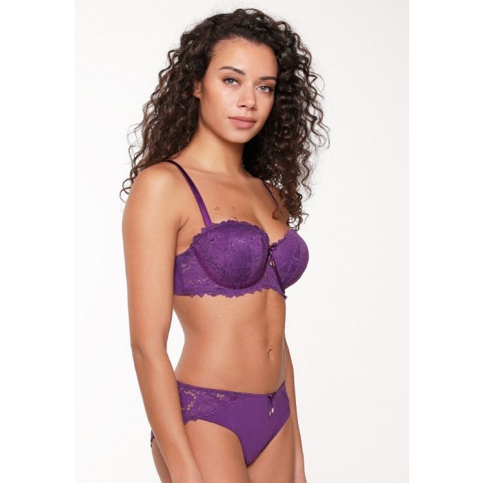 Kies dit najaar voor een geweldige kleur, namelijk de sensuele kleur paars. De paarse kleur is een ware must-have voor je herfstcollectie en daarnaast zal je partner jou niet kunnen weerstaan! De kanten afwerking in combinatie met de kleur maakt deze serie perfect voor ieder type vrouw. Daarnaast zorgt de goede pasvorm voor de juiste ondersteuning zodat je optimaal kunt genieten van deze eyecatcher. De balconet bh is op de cups afgewerkt met embroidery en ook zijn de cups bedekt met embroidery details. De schouderbandjes zijn verstelbaar en kruisen elkaar op de rug.