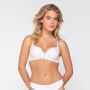 De bh heeft met gel gevulde push up cups, ondersteunende beugels en baleinen in de zijkanten. De cups zijn overtrokken met weelderig bloemen kant. De geschulpte en gewimperde randjes steken over de randen van de bh voor een fantastisch mooi effect. Tussen de cups is een sieraad aangebracht voor een luxe afwerking. De schouderbandjes zijn aan de voorkant dubbel en aan de achterkant plat en verstelbaar.