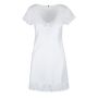 Het soepel vallende jurkje heeft een A-lijn model dat jouw vormen complimenteerd. De elegante V-hals en de korte mouwtjes van kant zorgen voor een charmante look. Combineer dit jurkje met de bijpassende string of slip en voeg er de bijpassende kimono aan toe voor een complete luxe nachtmode set!