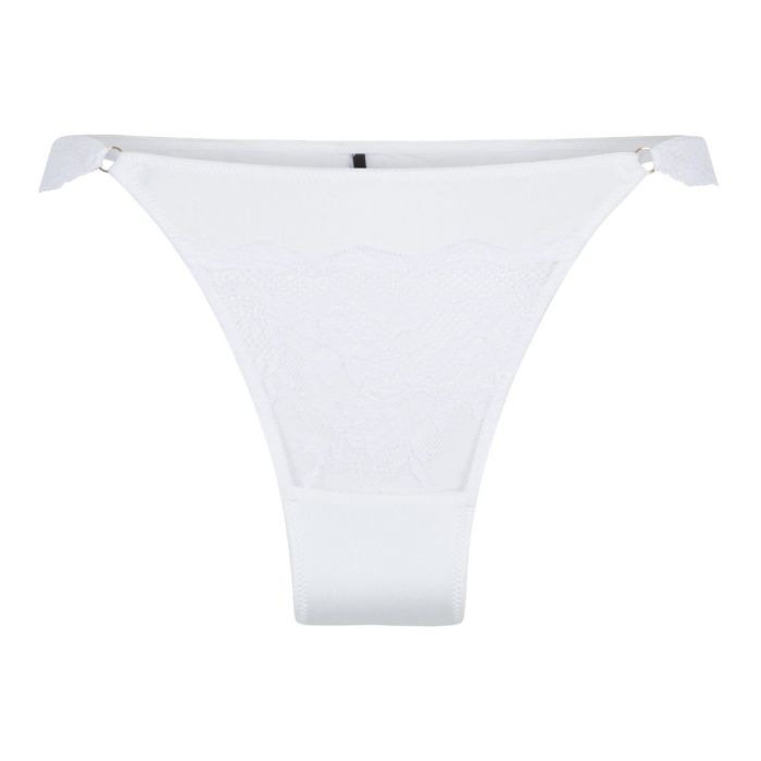 Maak je luxe lingerie set helemaal compleet met het dragen van de LingaDore String uitgevoerd in de kleur off white. Deze string heeft een luxe uitstraling en daardoor is de off white serie ook perfect om te dragen als bruidslingerie. De string is semi-transparant aan de voor- en achterzijde en is aan beide kanten afgewerkt met een ring detail. Combineer de string eenvoudig met een bijpassende bh voor een verleidelijke look.