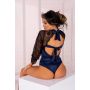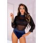 Deze body is perfect voor vrouwen die op zoek zijn naar een unieke stijl in hun garderobe. Het model doorbreekt de monotonie door het gebruik van kant, tule en blauwe elementen, wat zorgt voor een dosis originaliteit. De body is duidelijk opgedeeld in verschillende segmenten, waarbij elk segment wordt benadrukt door de eerder genoemde details. Het kant aan de uiteinden van de mouwen en aan de achterkant voegt stijl en elegantie toe, terwijl het inzetstuk aan de voorkant is ontworpen om de borsten te bedekken en te ondersteunen. De tule op de buik, onder de nek en op de mouwen voegt een vleugje mysterie toe en verhult het vrouwelijk lichaam op een subtiele manier. Daarnaast bieden de blauwe inzetstukken in het onderste gedeelte bescherming en volledige dekking van de bikinilijn. Deze creatie zal zeker vrouwen aanspreken die op zoek zijn naar meer verfijning en elegantie in hun garderobe.
