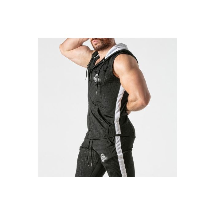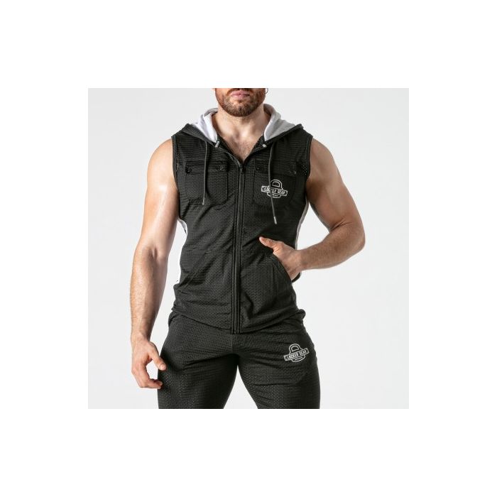 Deze mouwloze hoody is gemaakt van de fijnste ademende mesh-stof, waardoor het de perfecte keuze is voor sportieve activiteiten of gewoon voor een casual look. De hoody is ontworpen met comfort en stijl in gedachten, en biedt een optimale luchtcirculatie om je koel en droog te houden, zelfs tijdens intensieve trainingen. De volledige ritssluiting aan de voorkant maakt het gemakkelijk om de hoody aan en uit te trekken, en biedt ook de mogelijkheid om de ventilatie aan te passen aan je persoonlijke voorkeur. De pinhole zijbanden in een contrasterende kleur voegen een vleugje stijl toe aan het ontwerp en zorgen voor extra ademend vermogen. Een opvallend kenmerk van deze hoody is het gedrukte logo op de borst, waardoor je een sportieve en trendy uitstraling krijgt. Het logo is subtiel maar toch opvallend genoeg om je outfit net dat beetje extra te geven. Of je nu gaat joggen, naar de sportschool gaat of gewoon een ontspannen dagje thuis doorbrengt, deze mouwloze hoody is de perfecte keuze voor comfort en stijl. Met zijn hoogwaardige materialen en doordachte details is deze hoody een must-have voor elke sportieve garderobe.