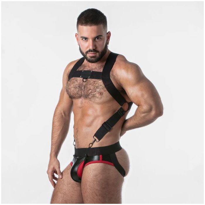 Bovendien zijn de D-ringen aan de binnenkant van de tailleband een slimme toevoeging die de veelzijdigheid van de jock brief verder vergroot. Deze ringen maken het eenvoudig om een harnas aan de jock brief te bevestigen, waardoor de drager zijn look kan personaliseren en aanpassen aan zijn specifieke wensen en voorkeuren. Of je nu kiest voor een casual look of een meer gedurfde stijl, deze jock brief biedt de perfecte basis voor een zelfverzekerde en aantrekkelijke uitstraling. Met de Locker Gear Punch Hole Jock Brief - Rood ben je verzekerd van een statement piece dat zowel functioneel als esthetisch aantrekkelijk is.