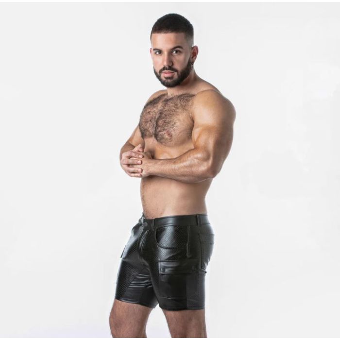 De Cargo short van het prestigieuze merk Locker Gear is vervaardigd uit het meest verfijnde perforated leatherette materiaal, dat niet alleen een luxe uitstraling biedt, maar ook uitzonderlijk comfort en functionaliteit. Dit innovatieve textiel is ontworpen om ademend te zijn, waardoor het ideaal is voor zowel warme zomerdagen als actieve buitenactiviteiten. De perforaties in de stof zorgen voor een optimale luchtcirculatie, waardoor de drager zich koel en comfortabel voelt, ongeacht de omstandigheden.