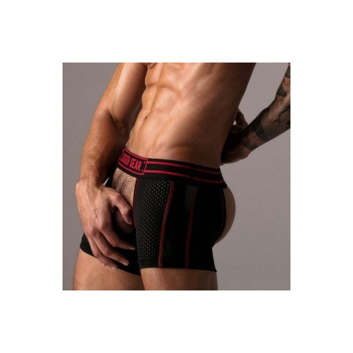 De Locker Gear Watch It Hard Chaps - Rood is een sportieve short met open design. Chaps kennen we allemaal als het leren kledingstuk om de broek te beschermen. Op deze manier krijgt functionele mode uit het verleden weer nieuw leven ingeblazen. En hoe!