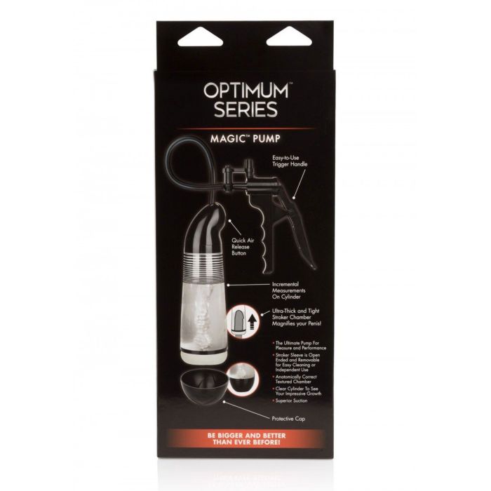 CalExotics Optimum Series Magic Pump is alles wat je nodig hebt om jouw penis groot en sterk te pompen. Jij zal eindelijk de leiding hebben in de slaapkamer na deze magische pomp te hebben gebruikt. De slanke, duurzame automatische pomp biedt superieure zuigkracht en krachtig plezier met maar 1 druk op de knop
