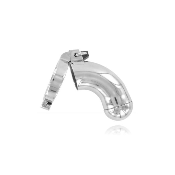Deze Male Chasity Device with removable cover van het merk Spartan Steel is een peniskooi die zeer makkelijk in gebruik is. Schuif de ring om je penis en stop de penis in de cover. Schuif de cover nu aan op de ring en zet hem vervolgens op slot. De penis zit nu opgesloten en kan geen kant op. Wanneer de man opgewonden wordt zal hij merken dat de peniskooi zijn erectie tegenhoudt. Ideaal voor kinky BDSM spelletjes. De Removable cover van deze Spartan Steel Male Chasity Device heeft een lengte van 10 cm en diameter van 5 cm (binnen diameter van 3,8 cm). Het RVS materiaal waar hij van gemaakt is, is zeer sterk, makkelijk afneembaar en waterproof.